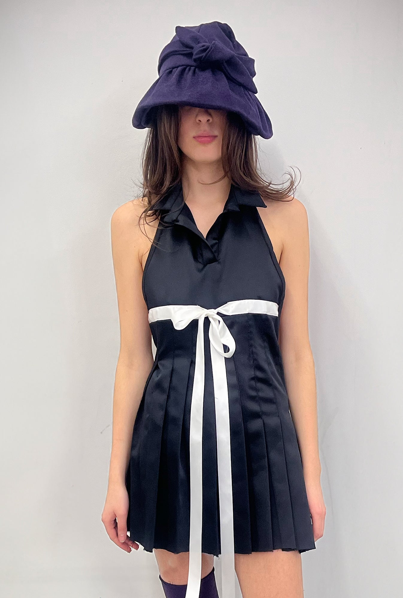 Cropped piece in black viscose, with a ribbed waistband and cuffed bottoms.